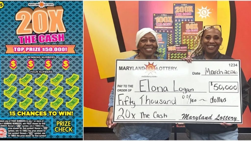 Elona Logan stated that on March 5, while collecting the prize at Lottery headquarters in Baltimore, her daughter purchased two $5 20X the Cash tickets from the US Fuel station at 6100 Moravia Park Drive in Baltimore and brought them home as a gift.