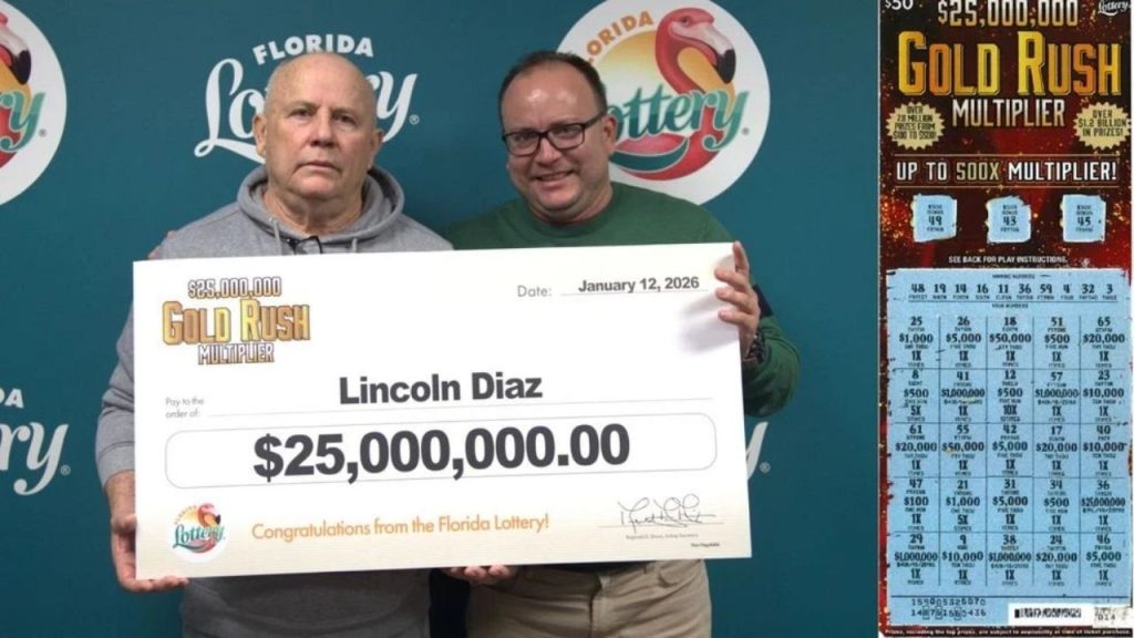 The Florida Lottery announced on Tuesday that Lincoln Diaz won the $25 million top prize in the $25,000,000 GOLD RUSH MULTIPLIER Scratch-Off game.