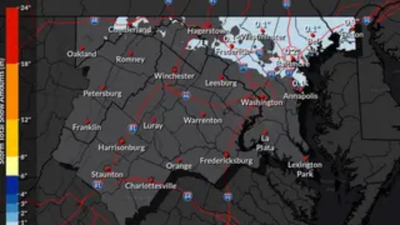 The National Weather Service has issued winter weather advisories for Allegan, Washington, Frederick, Carroll, Baltimore, Howard, and Montgomery counties in Maryland, as well as Frederick, Warren, Clarke, and Loudoun counties in Virginia.