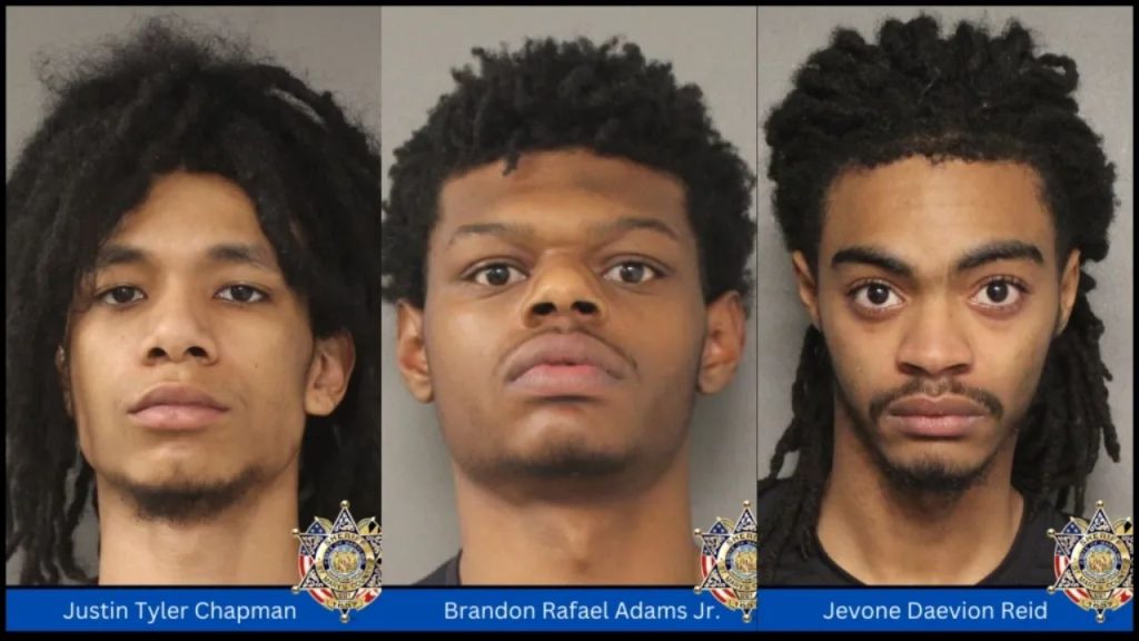 Patrol deputies tracked down the suspect vehicle and discovered three occupants inside. A traffic stop was started, and the driver was identified as Justin Tyler Chapman, 22, of Lexington Park, with Brandon Rafael Adams Jr., 18, of Bowie, in the front seat and Jevone Daevion Reid, 19, of California, in the back seat. The Criminal Intelligence Unit identified Reid as the suspect who allegedly aimed the firearm at the victim.